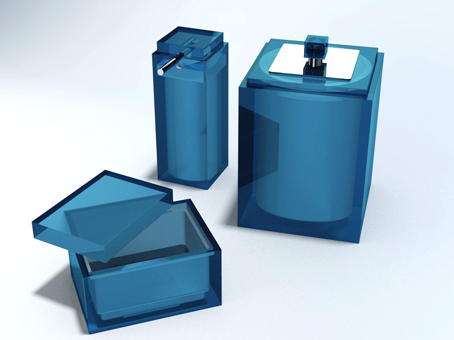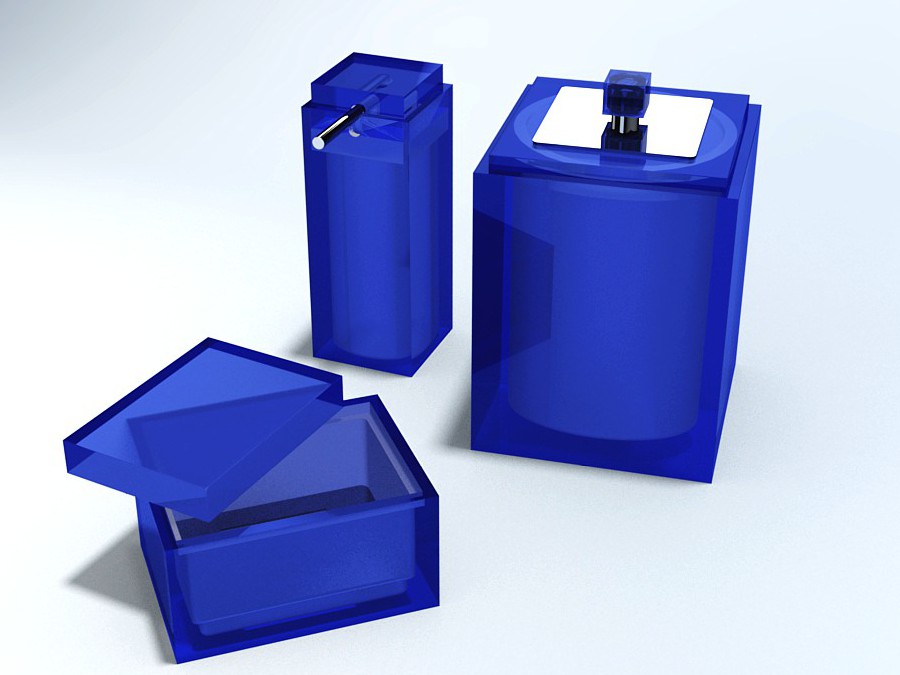 CONJUNTO GOURMET 3Pç C/ Sobre-tampa em INOX DEC Cubo - 090-AZ Cobalto Transparente