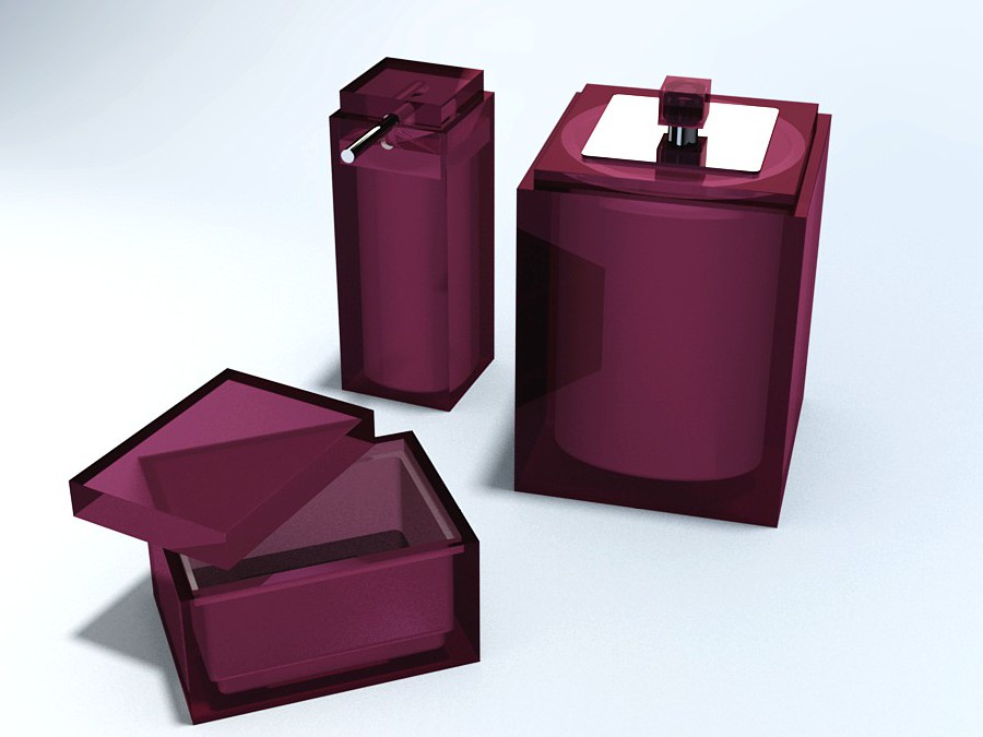 CONJUNTO GOURMET 3Pç C/ Sobre-tampa em INOX DEC Cubo - 110-Rosa Transparente