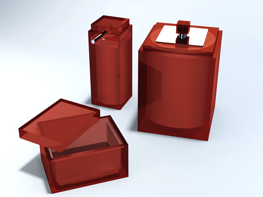 CONJUNTO GOURMET 3Pç C/ Sobre-tampa em INOX DEC Cubo - 120-Vermelho Transparente