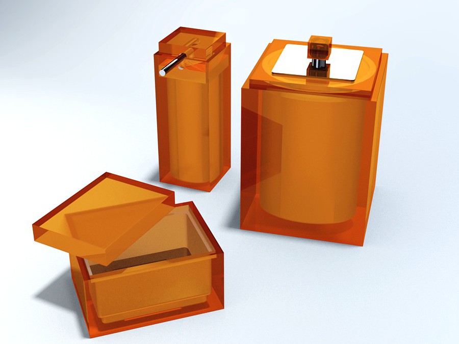 CONJUNTO GOURMET 3Pç C/ Sobre-tampa em INOX DEC Cubo - 130-Laranja Transparente