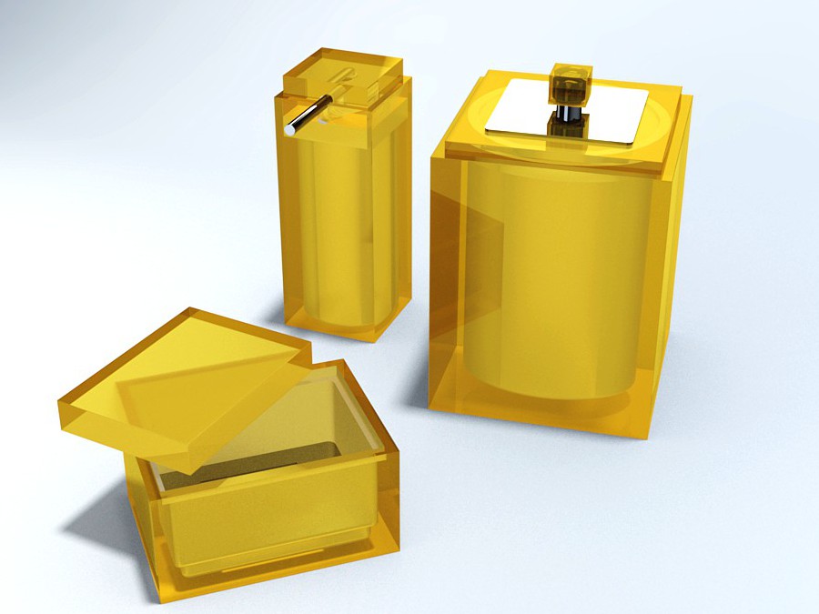CONJUNTO GOURMET 3Pç C/ Sobre-tampa em INOX DEC Cubo - 140-Amarelo Transparente