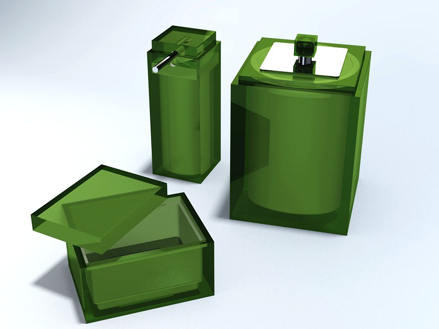 CONJUNTO GOURMET 3Pç C/ Sobre-tampa em INOX DEC Cubo - 150-Verde Transparente