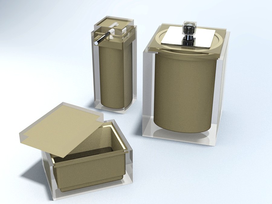 CONJUNTO GOURMET 3Pç C/ Sobre-tampa em INOX DEC Cubo - 155-Oliva Transparente